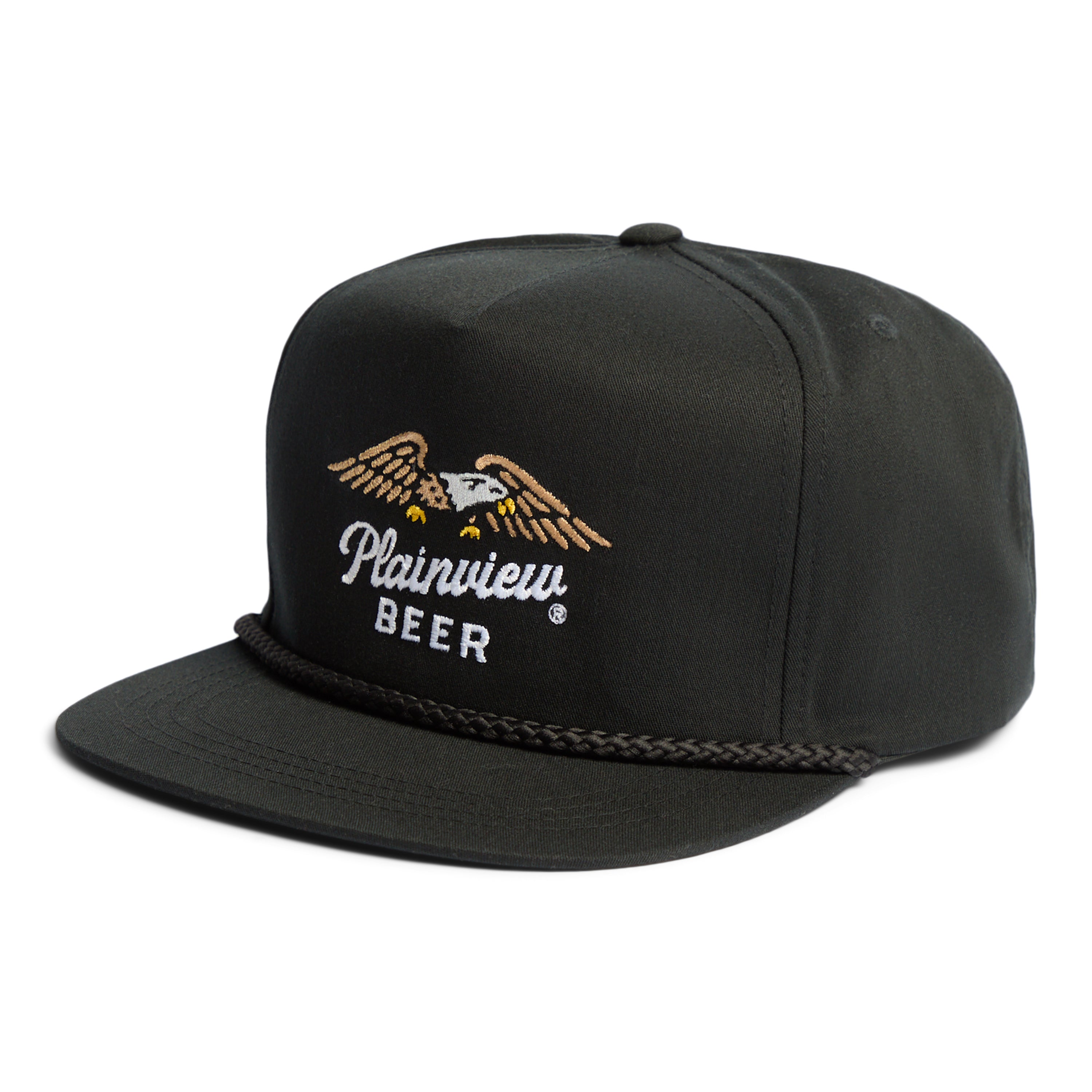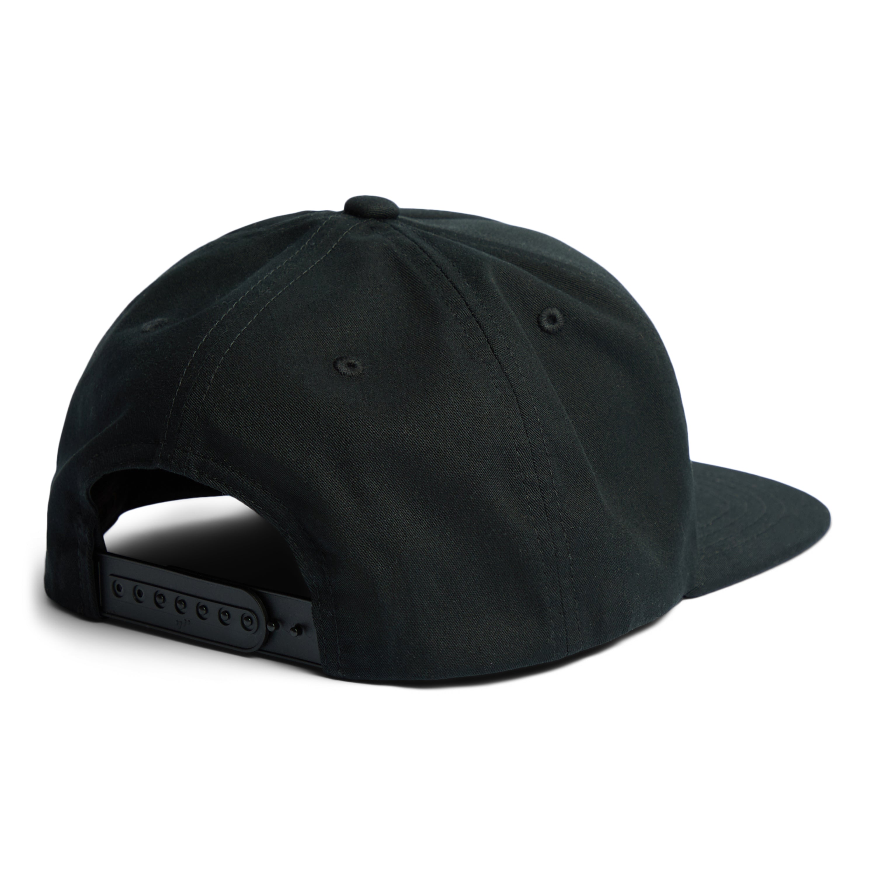 The Plainview High Plains 5 panel black snap cap. High Profile. Cotton Twill. Lightly structured.