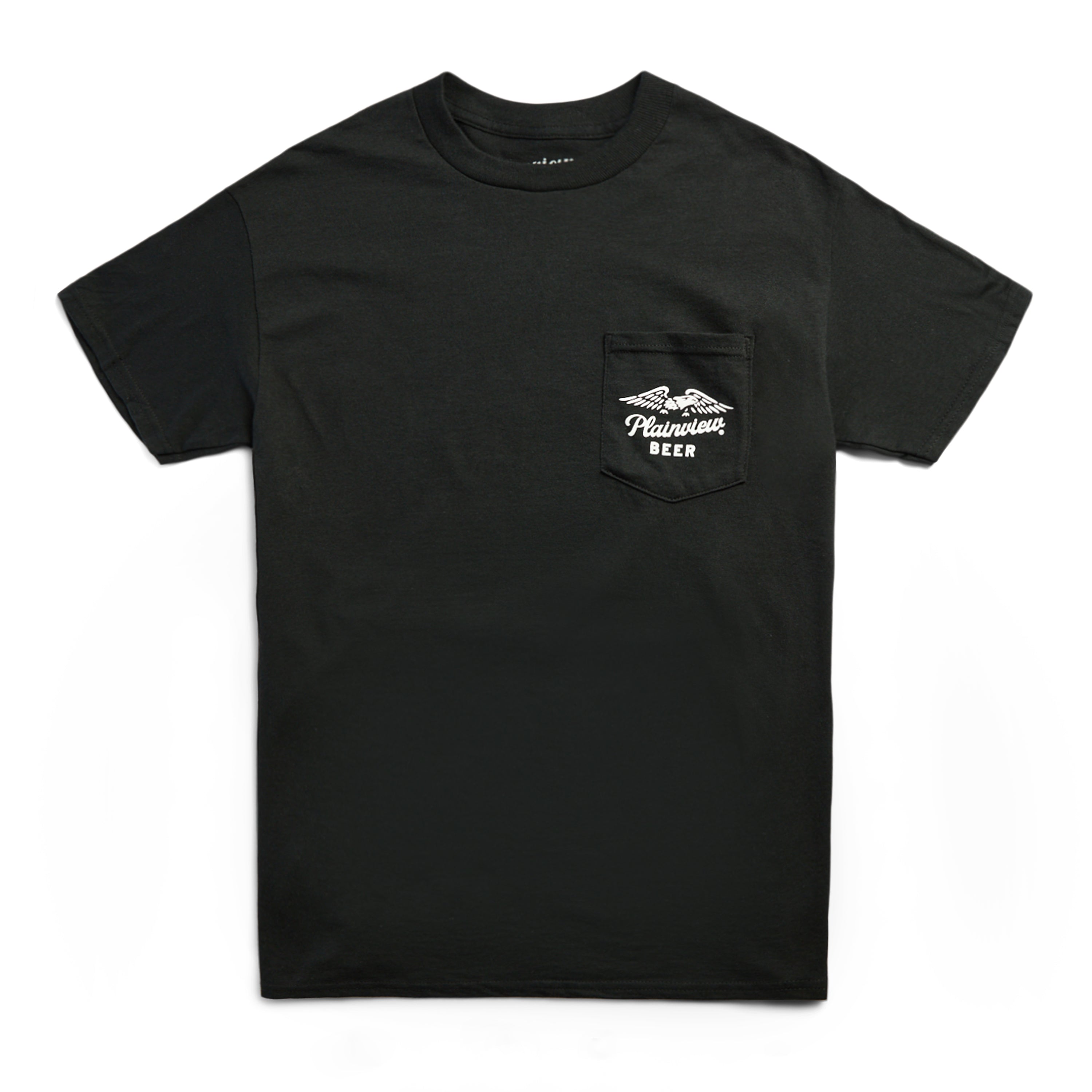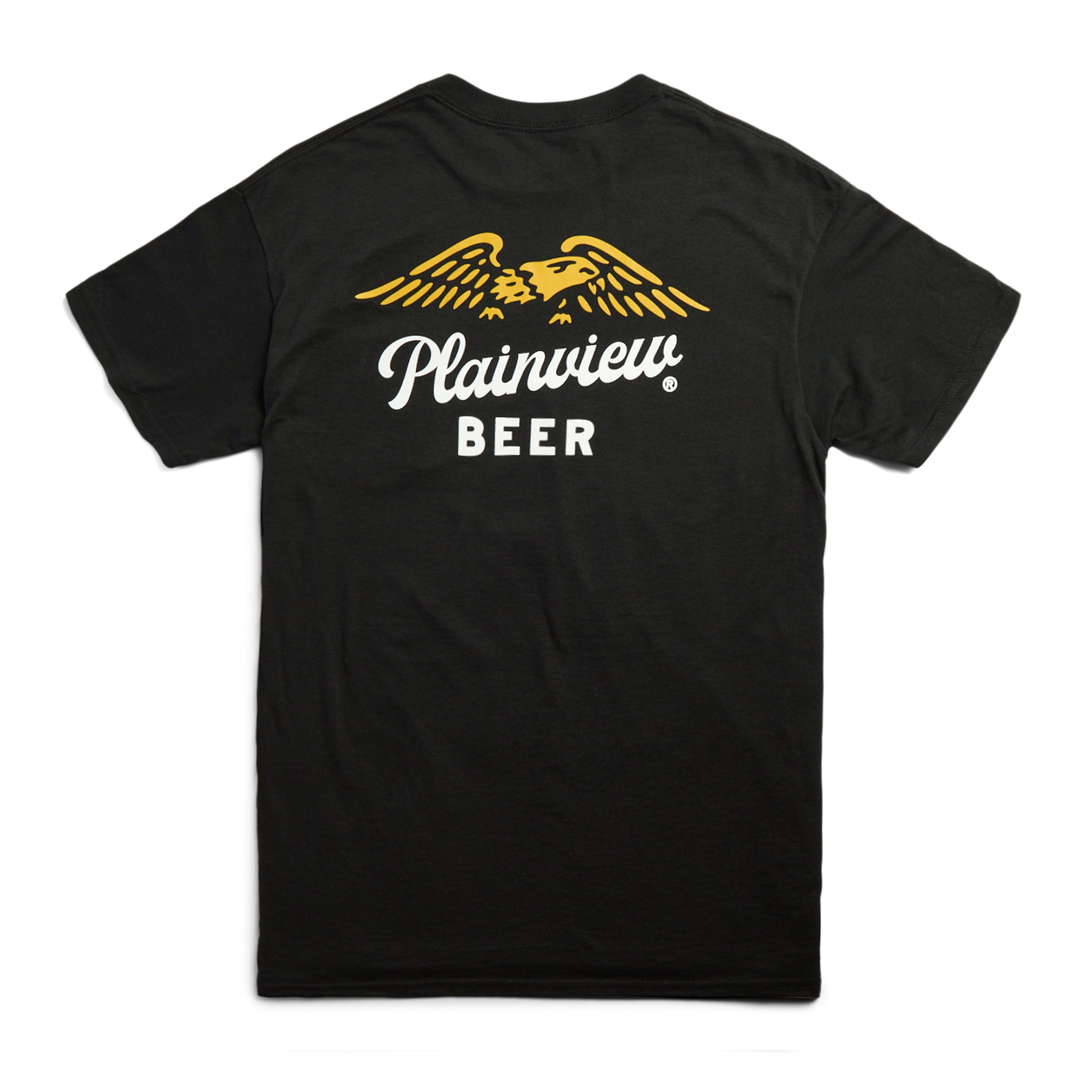 This Plainview Beer Pocket T Shirt is the perfect way to show your support for your favorite beer. It's made with a lightweight and soft material to ensure all-day comfort. Features a single color pocket print and two color gold and white print on the back.